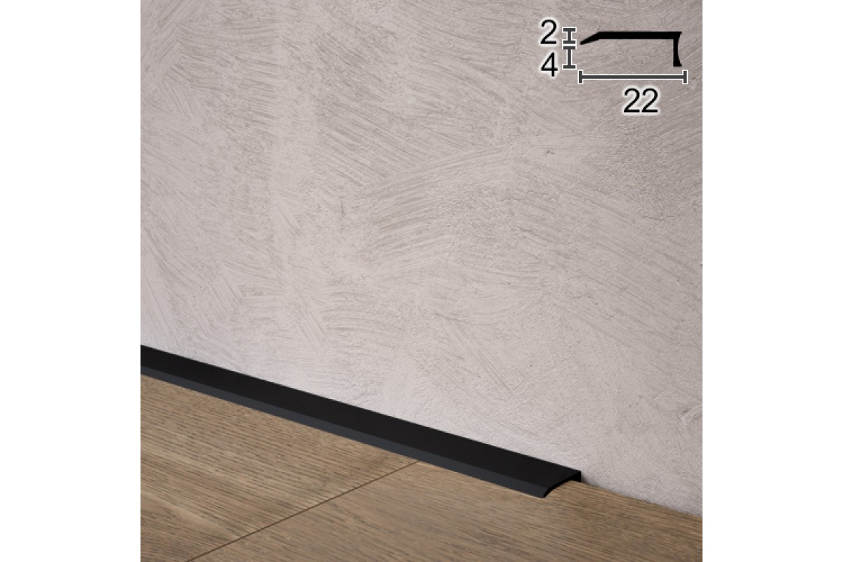 Антиплинтус алюминиевый плоский профиль P07 2*22мм RAL-9005 чорный