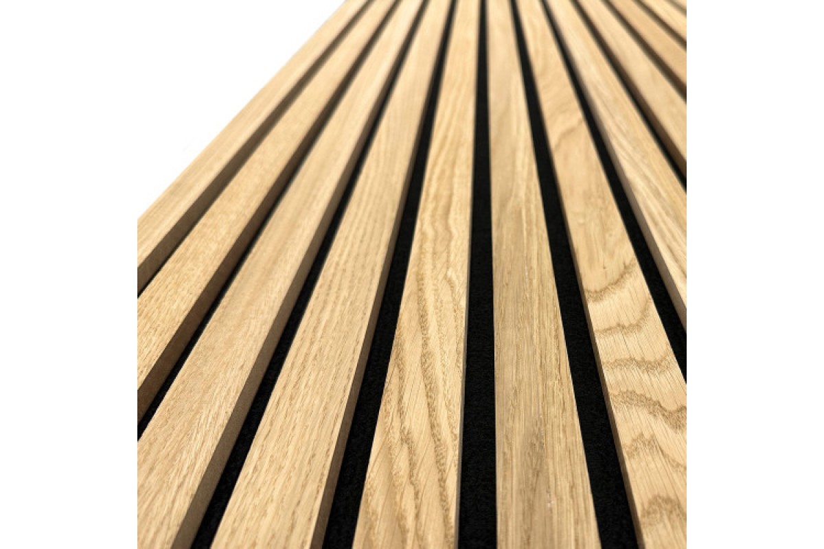 Декоративные рейки с натуральным шпоном из Дуба покрытого акриловым лаком на акустическом PET–войлоке делают эти панели особенными. Шпон из натурального дерева придает естественный и всегда неповторимый вид.