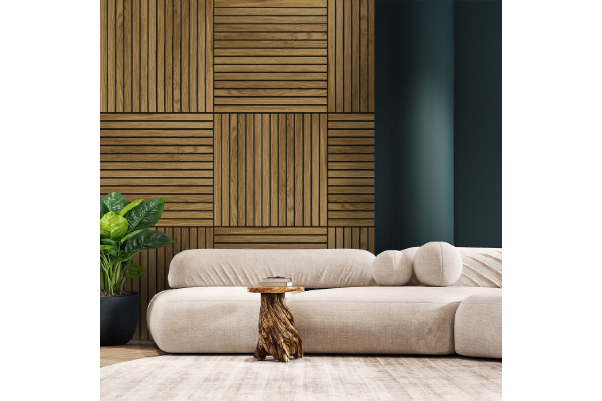 Панель декоративная реечная акустическая на войлоке с натуральным шпоном из Дуба 600х600мм