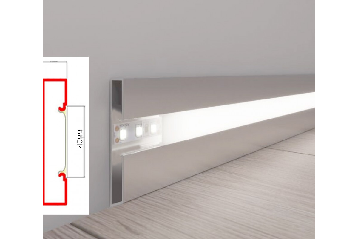 Плинтус WT Profil накладной 70 мм для LED-подсветки, цвет анодированное серебро.