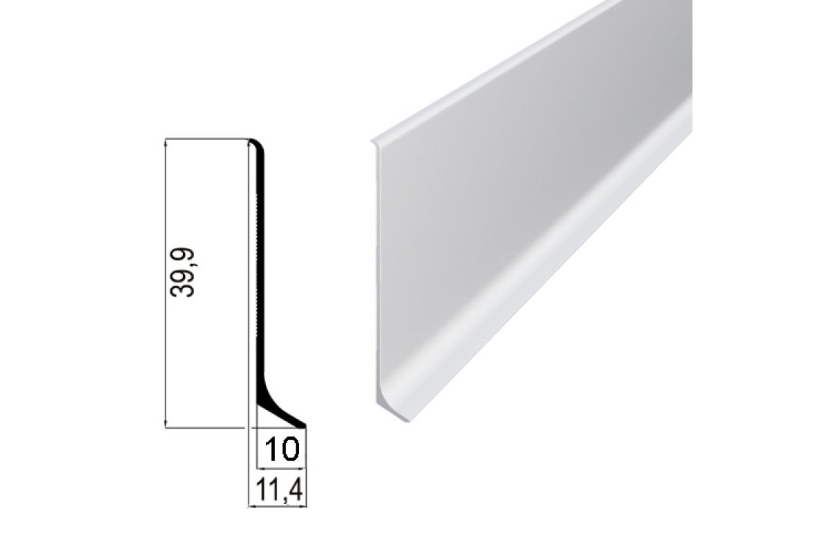 Плинтус WT алюминиевый накладной 40мм анодированное серебро