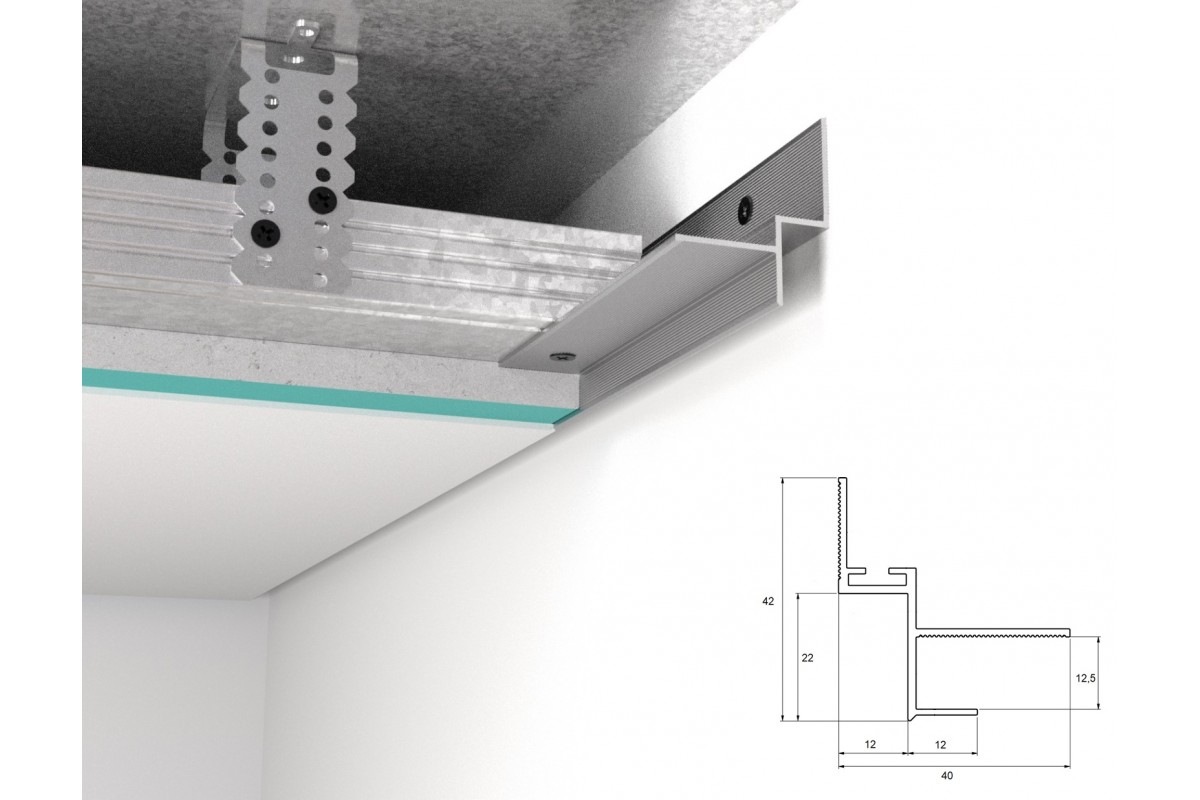 Полный размер профиля 40*42мм, фактический послемонтажный 12*22мм.