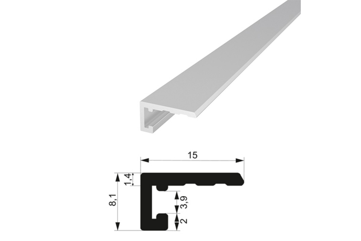 Товщина перекриття алюмінієвого профілю по підлозі 15 мм, що дозволяє перекривати технічний зазор між стіною і покриттям для підлоги, незалежно від використовуваного підлогового покриття (паркет, ламінат, вініл).