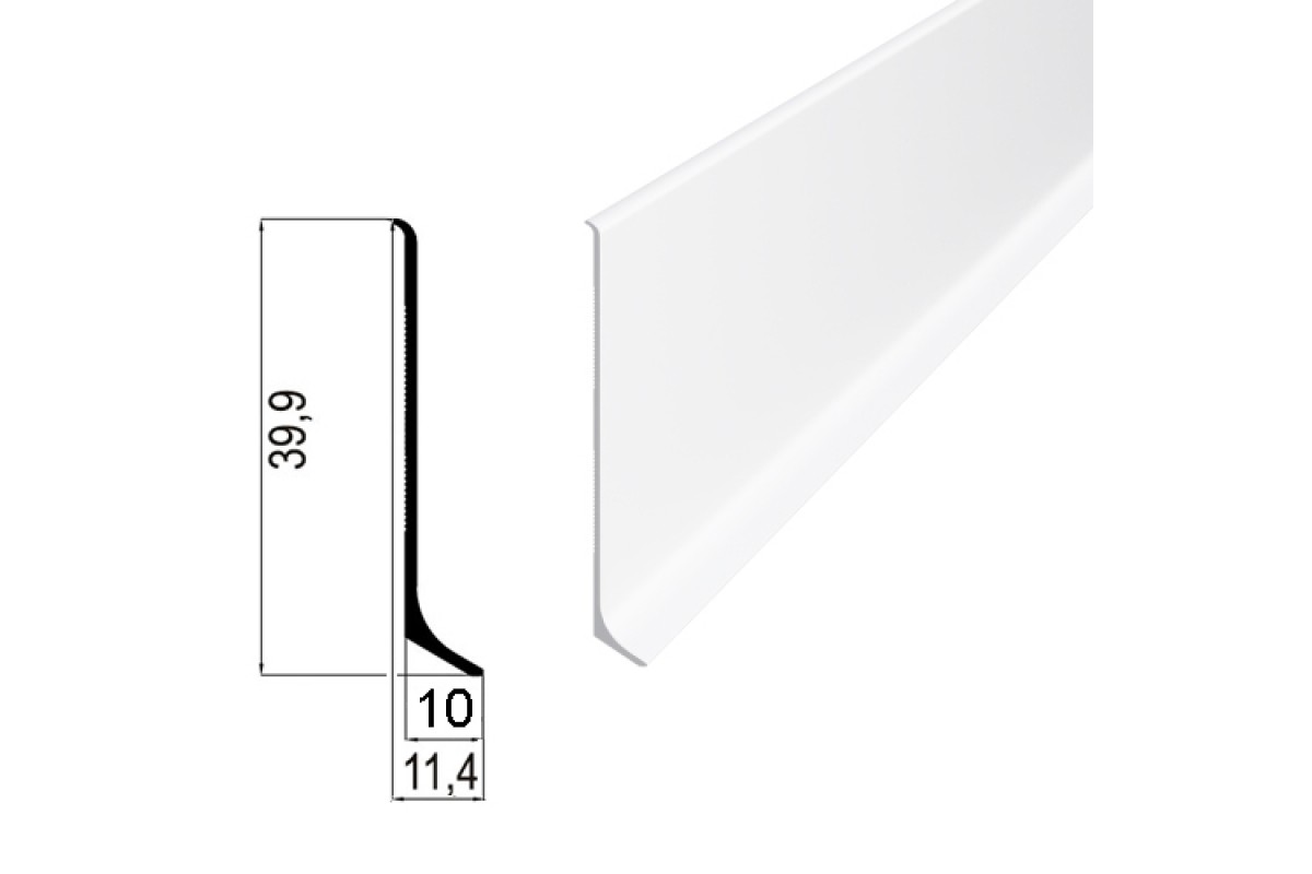 Плінтус WT алюмінієвий накладний 40мм фарбований RAL-9016 білий.