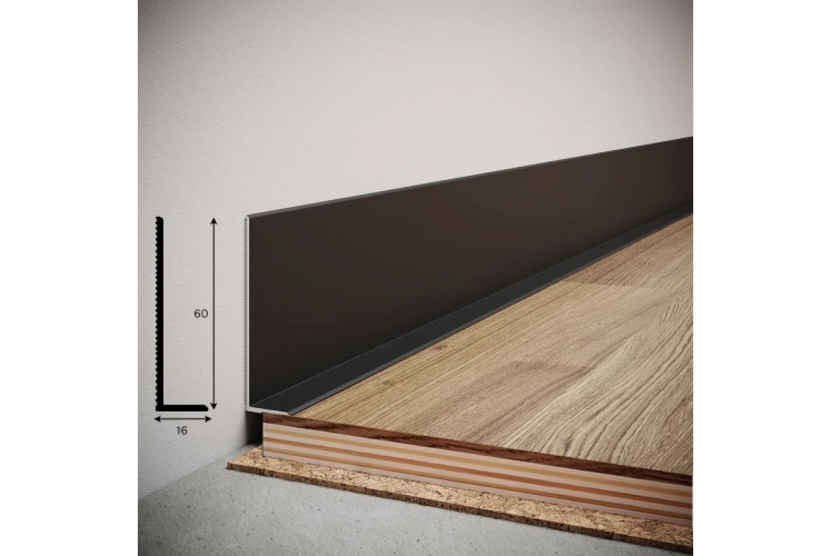 Плінтус WT алюмінієвий накладний 60мм L6016 фарбований RAL-9005 чорний матовий.