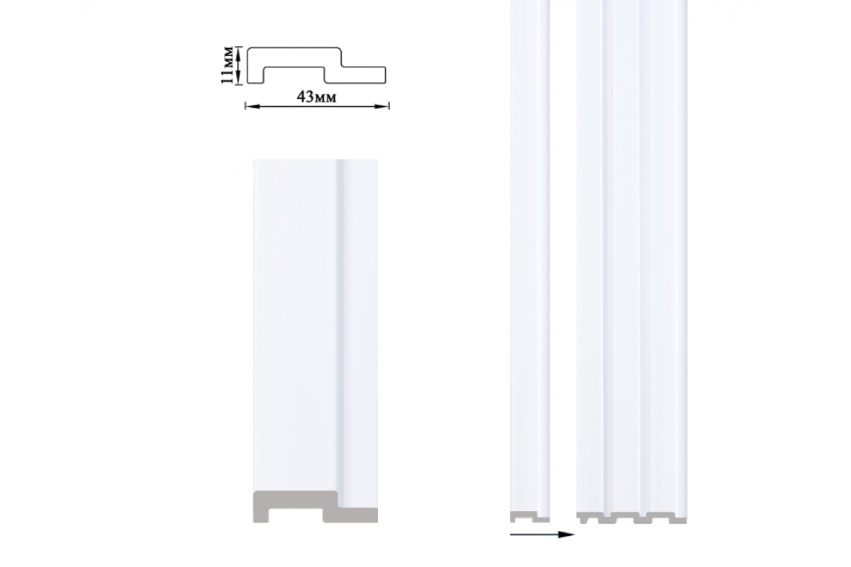 Колірна гама згідно фото палітри. Розмір планки 2900х43х11 мм, упаковка 50 планок.