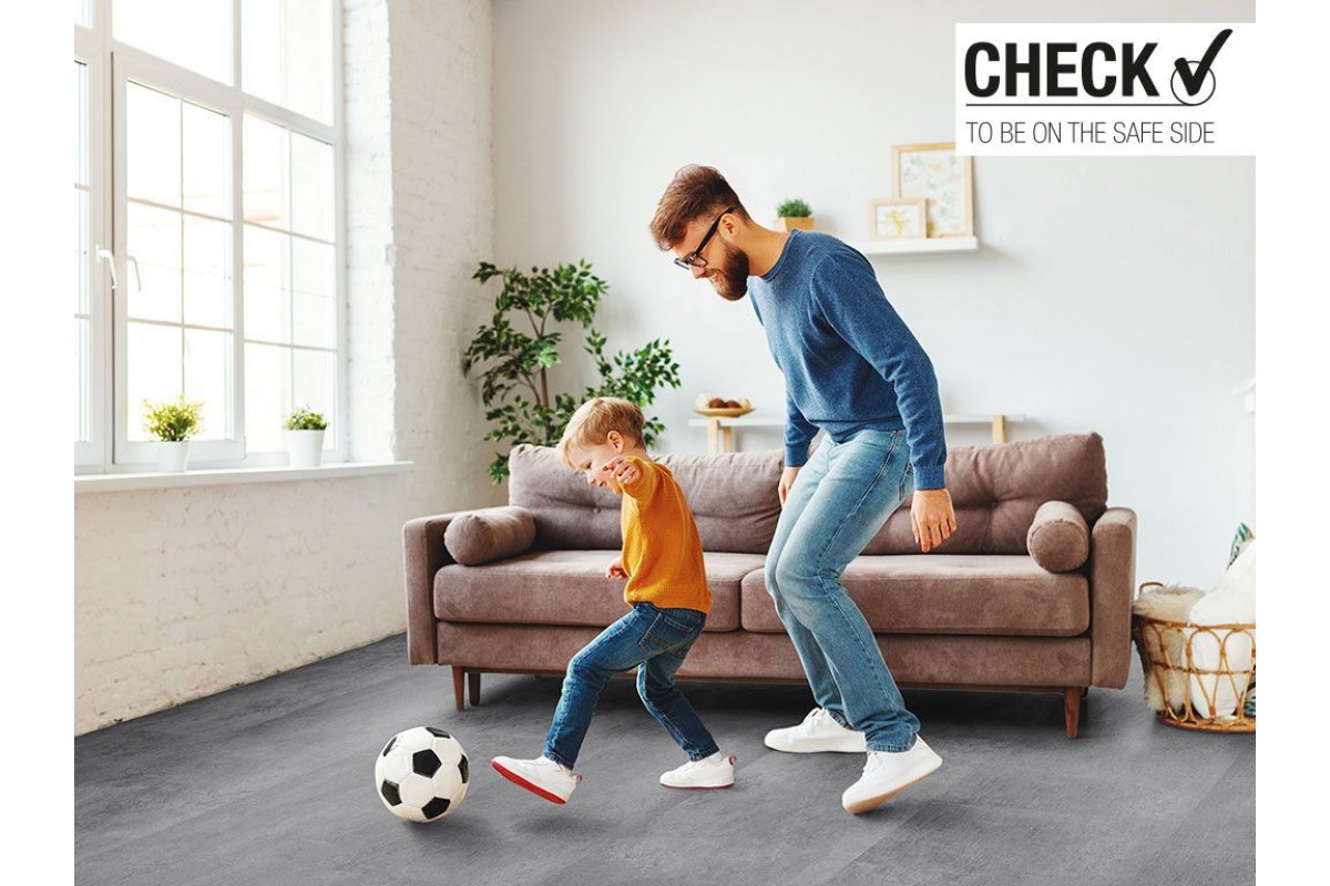Декори колекції Premium Long Tile повного приклеювання до основи - таке покриття у поєднанні з чорновою підлогою утворюють єдине ціле, що призводить до зниження шуму від ходьби. Покриття відходять для підлог з підігрівом, оскільки приклеювання по всій поверхні забезпечує особливо хорошу передачу тепла від чорнової підлоги до поверхні. Усі покриття для підлоги CHECK не містять фталатів. Планки у форматі 914.4 x 457.2 мм із товщиною 2,5 мм доповнені 4-сторонньою фаскою.