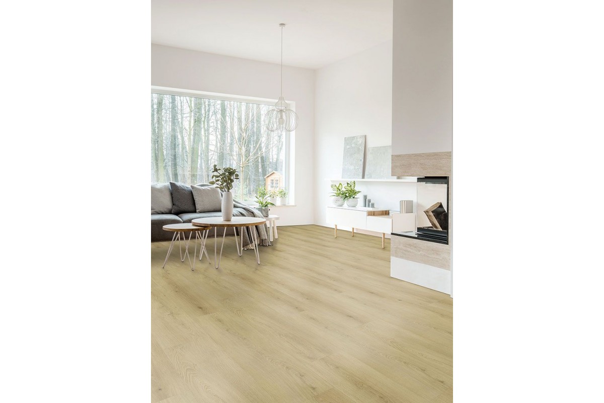 Завдяки особливій структурі поверхні та теплому дубовому відтінку, широкі планки колекції CHECK Basic Collection виглядають автентично та візуально розширюють простір. Вбудована шумопоглинаюча підкладка забезпечує швидке та легке укладання, а також тихий мікроклімат у приміщенні. Таке покриття для підлоги ідеально для комерційного використання і, відповідно, побутового.