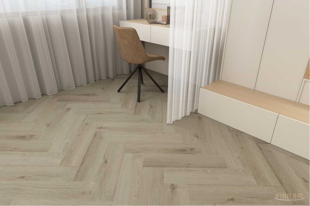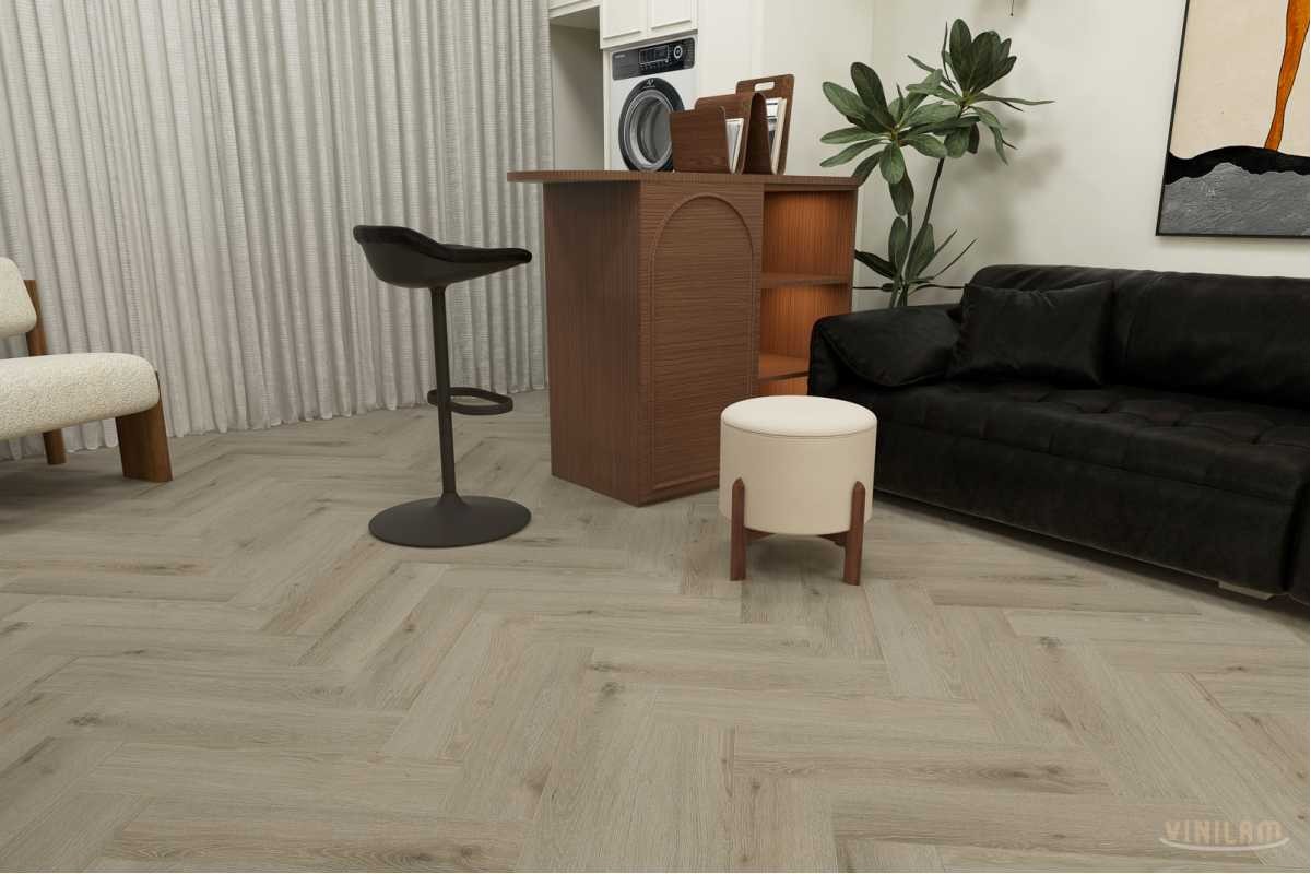 Виниловая плитка Vinilam 643A11 Дуб Грейдж коллекция 2.5мм Herringbone, укладка английской елкой.