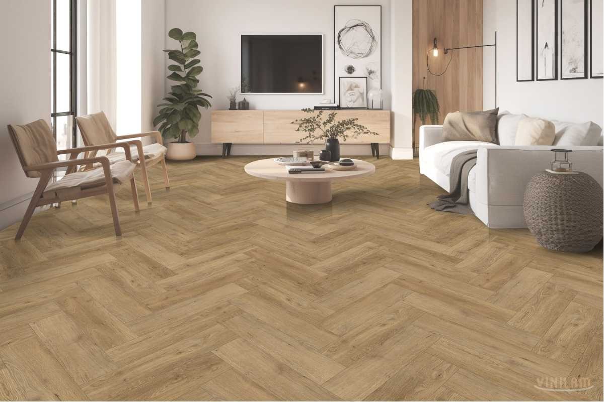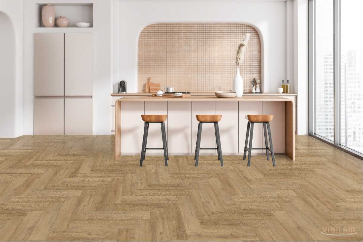 Виниловая плитка Vinilam MS1015 Дуб Крафт коллекция 2.5мм Herringbone, укладка английской елкой.