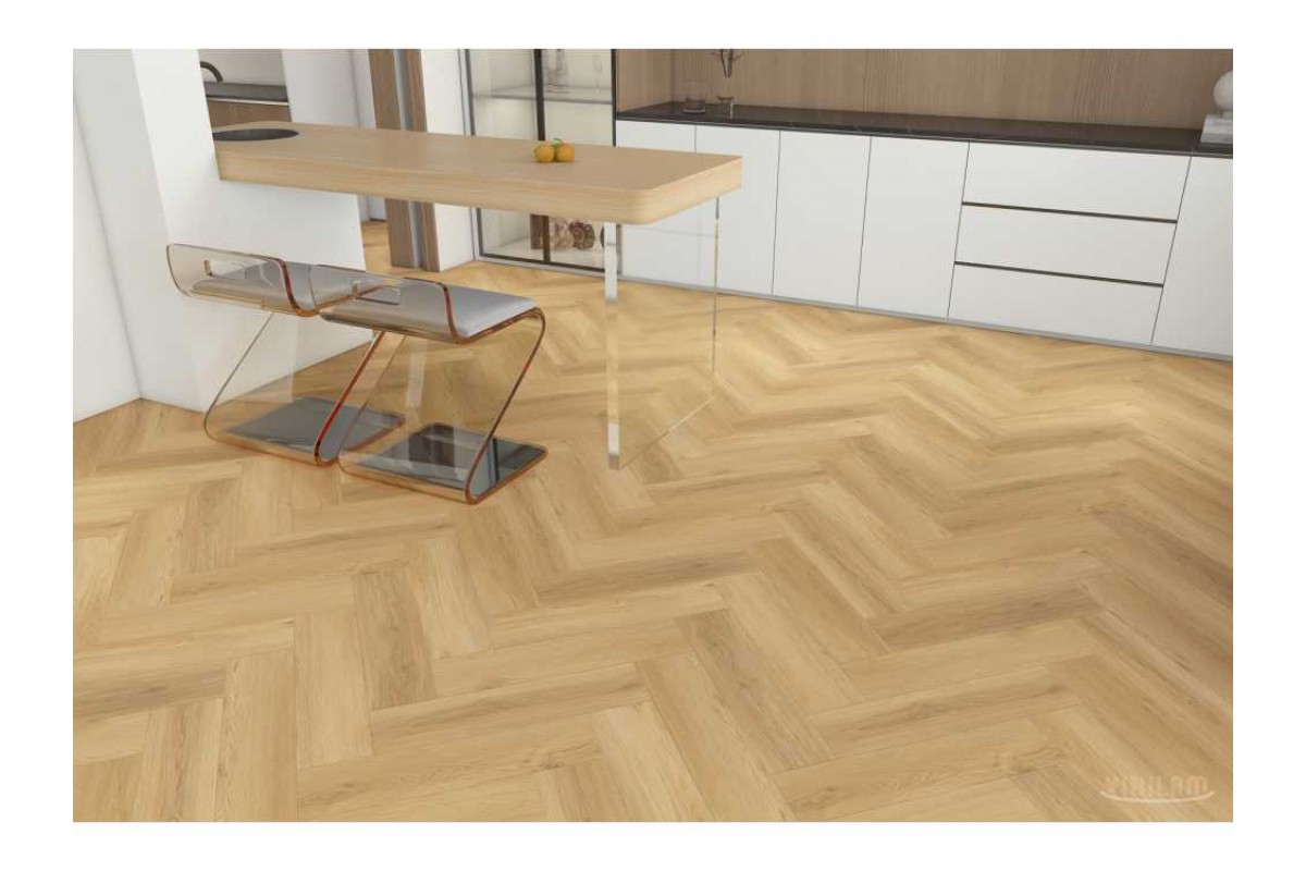 Виниловая плитка Vinilam WF0472 Дуб Баррик коллекция 2.5мм Herringbone, укладка английской елкой.