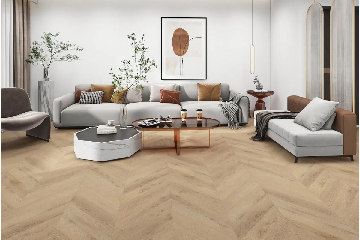 Виниловый ламинат BLISSGROUND Havana Sands серия Chevron Line SPC - иммитация кладки французской елочой.