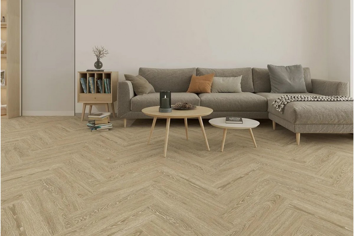 Виниловый ламинат BLISSGROUND Ibiza серия Herringbone Line SPC - иммитация кладки английскрой елочой.