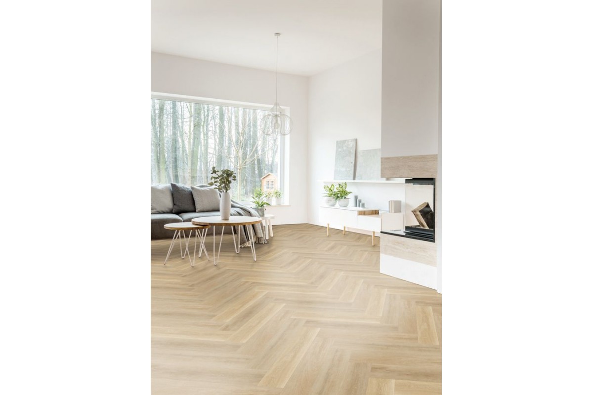 Благодаря более твёрдой основе плиты (SPC ) CHECK Herringbone можно укладывать даже в местах, где обычные виниловые полы могут размягчиться под воздействием тепла, например, на окнах от пола до потолка. Перед укладкой не требуется аклиматизация материала к микроклимату помещения. Кроме того, виниловые полы тёплые, прочные и очень легко моются. По сравнению с натуральным деревом, они менее подвержены царапинам. Виниловые напольные покрытия CHECK отличаются высокой износостойкостью и подходят не только для жилых, но и для коммерческих помещений. Они также подходят для влажных помещений и полов с подогревом (в соответствии с рекомендациями производителя). Люди с аллергией на пылевых клещей оценят эффективную и легкую уборку. CHECK впечатляет визуально и тактильно благодаря реалистичному декоративному рисунку, который делает пол максимально похожим на настоящий деревянный пол и придает помещению аутентичный, уютный вид.