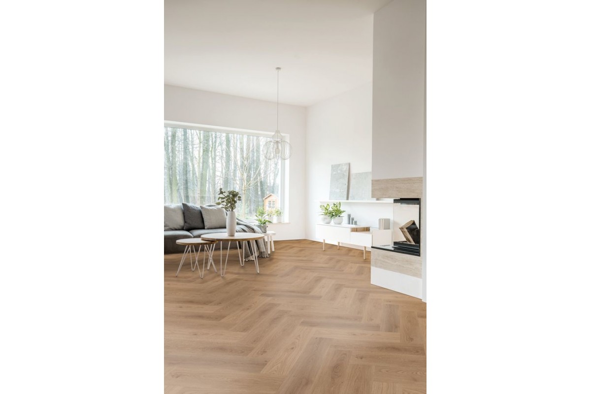 Благодаря более твёрдой основе плиты (SPC ) CHECK Herringbone можно укладывать даже в местах, где обычные виниловые полы могут размягчиться под воздействием тепла, например, на окнах от пола до потолка. Перед укладкой не требуется аклиматизация материала к микроклимату помещения. Кроме того, виниловые полы тёплые, прочные и очень легко моются. По сравнению с натуральным деревом, они менее подвержены царапинам. Виниловые напольные покрытия CHECK отличаются высокой износостойкостью и подходят не только для жилых, но и для коммерческих помещений. Они также подходят для влажных помещений и полов с подогревом (в соответствии с рекомендациями производителя). Люди с аллергией на пылевых клещей оценят эффективную и легкую уборку. CHECK впечатляет визуально и тактильно благодаря реалистичному декоративному рисунку, который делает пол максимально похожим на настоящий деревянный пол и придает помещению аутентичный, уютный вид.