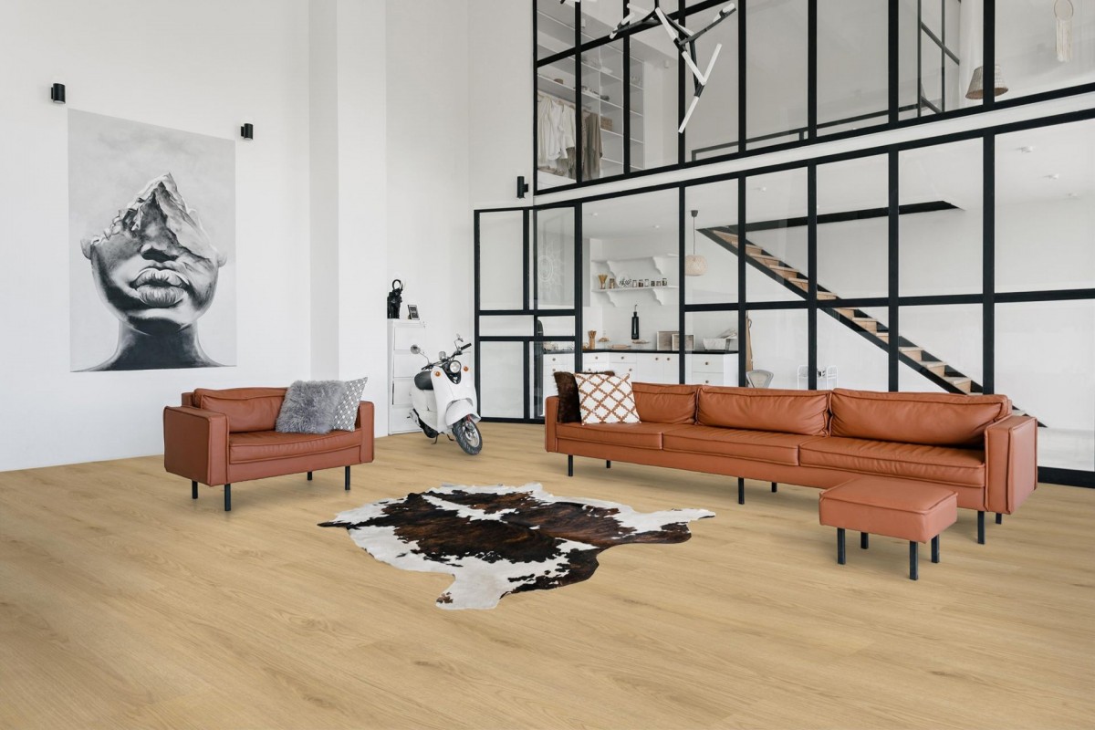 Благодаря особой структуре поверхности и теплому дубовому оттенку, широкие планки коллекции CHECK Maximum Collection выглядят аутентично и визуально расширяют пространство. Встроенная шумопоглощающая подложка обеспечивает быструю и легкую укладку, а также тихий микроклимат в помещении. Такое напольное покрытий идеально для коммерческого использования и, естественно, бытового.