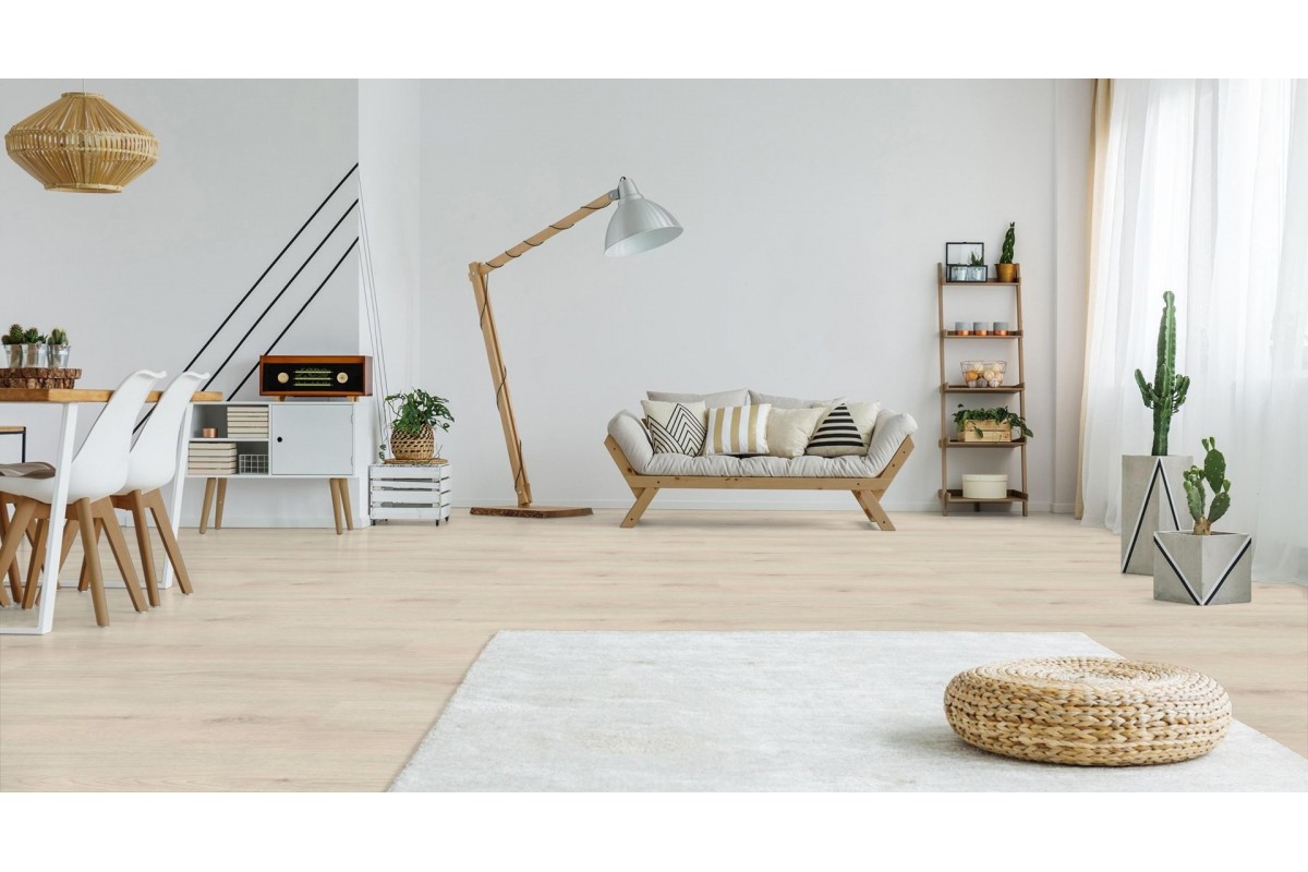 Коллекция Basic имеет широкую планку 1524 х 228 мм при толщине 6,5 мм с классом использования 34 и интегрированной шумопоглощающей подложкой.