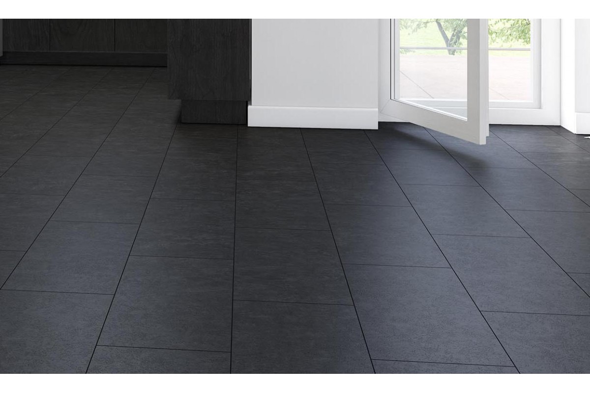 Коллекция Tiles имеет панели под иммитацию камня-бетона, при толщине 4,0 мм с классом использования 33 и интегрированной шумопоглощающей подложкой 1мм.